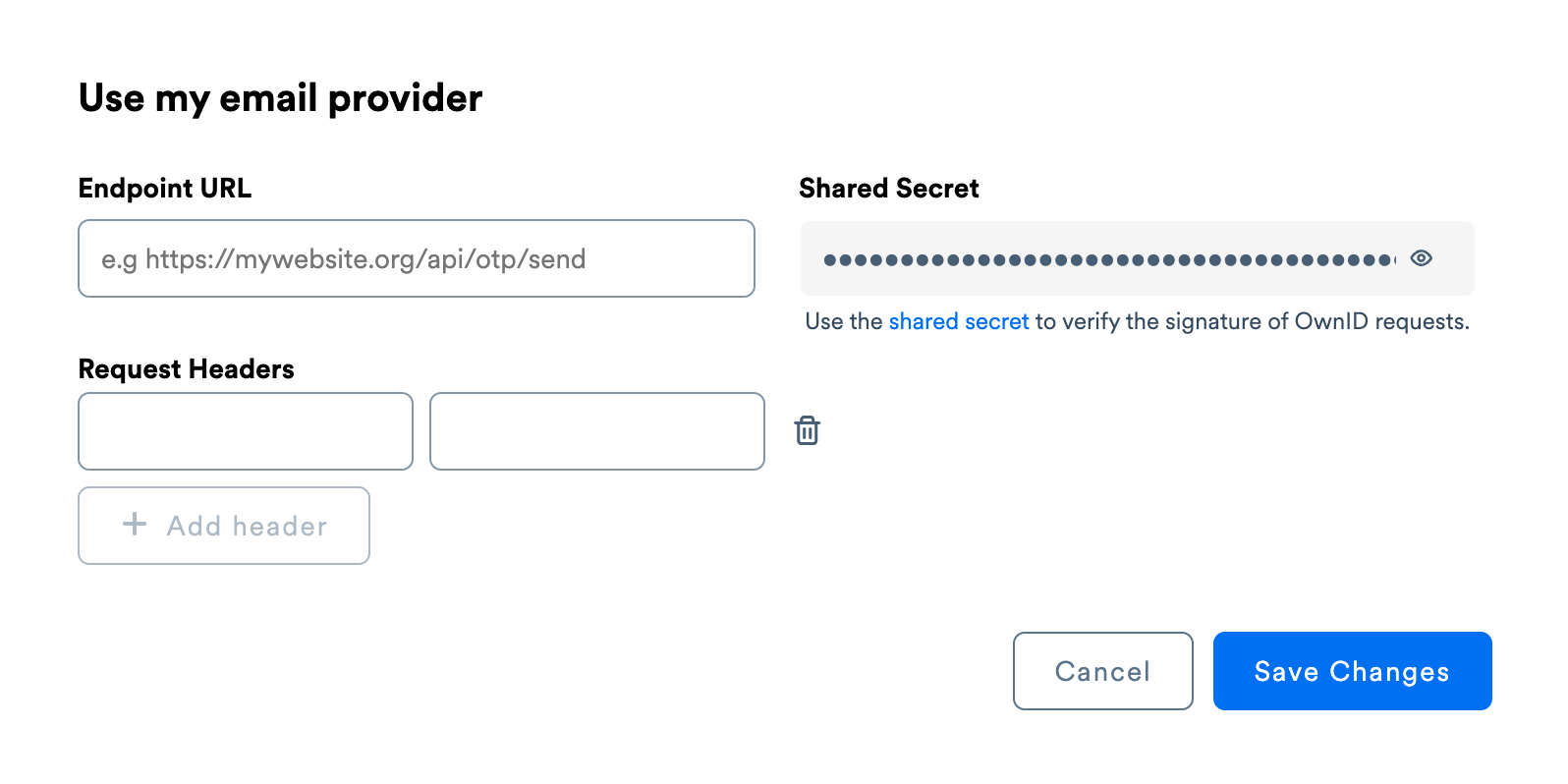 - Endpoint URL. OwnID will use it to make requests to your web server.
